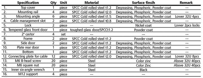 Item No: Capacity(U) Width(mm) Depth(mm) WxDxH